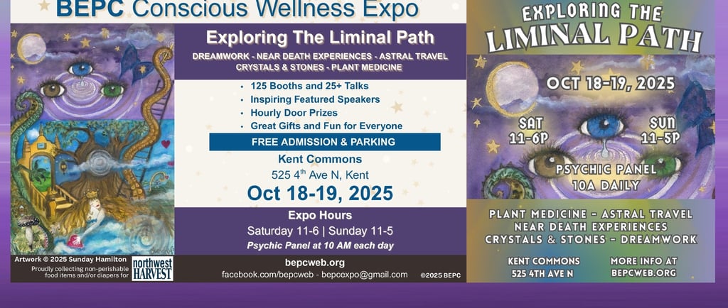 Join us Saturday& Sunday October 18-19, 2025 at the Kent Commons, 525 4th Ave N, Kent WA 98032 We will be at booth # 94& 95. Violet Serenity Moon & Goddess In U There will be a free psychic panel which Violet will be on starting at 10 am the fair is from 11-6 pm Violet will be doing giveaways, giving a FREE TALK on " How to prevent Entities from feeding on You when your in Liminal space. at 2pm on Saturday. Workshop at 6-7:30 pm on Saturday When You're stuck in a loop in Liminal Space Shamanic tools for realizing and getting out We look forward to seeing you there!!!